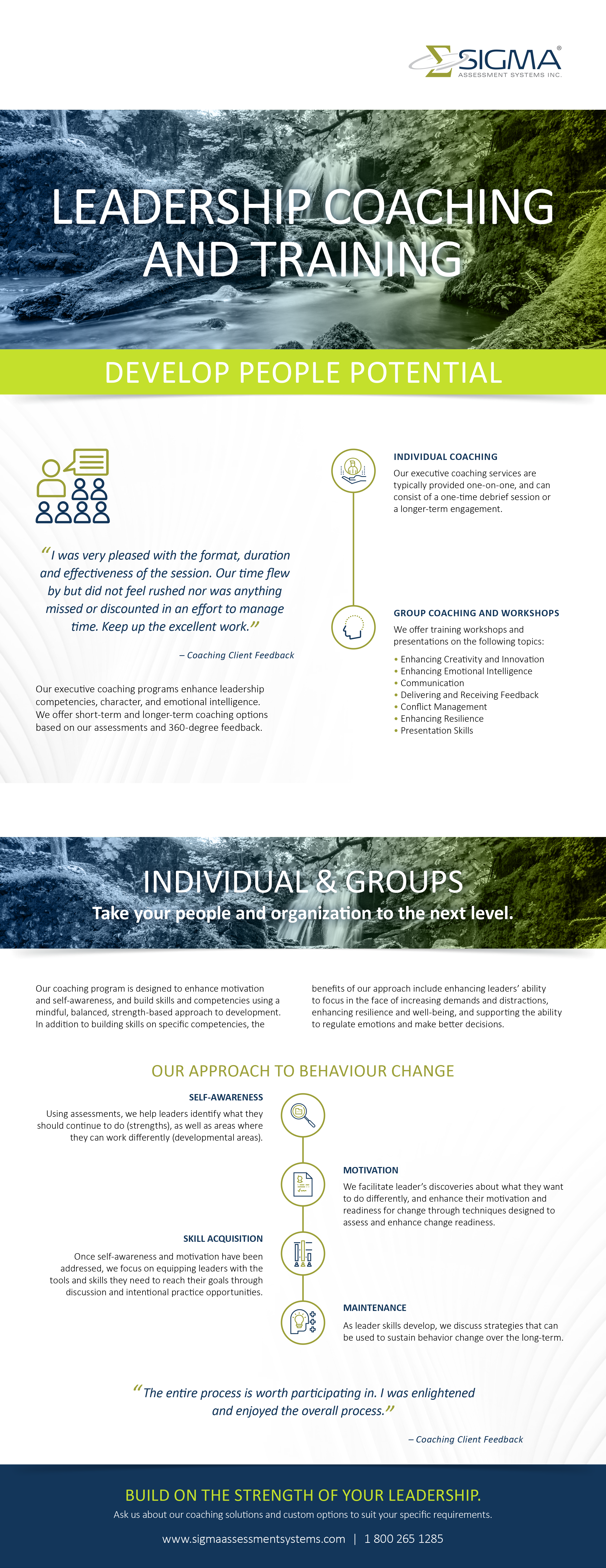 If you’re ready to experience the impact of effective leadership coaching at your organization, contact us today to discuss how SIGMA’s coaching solutions can support your team.