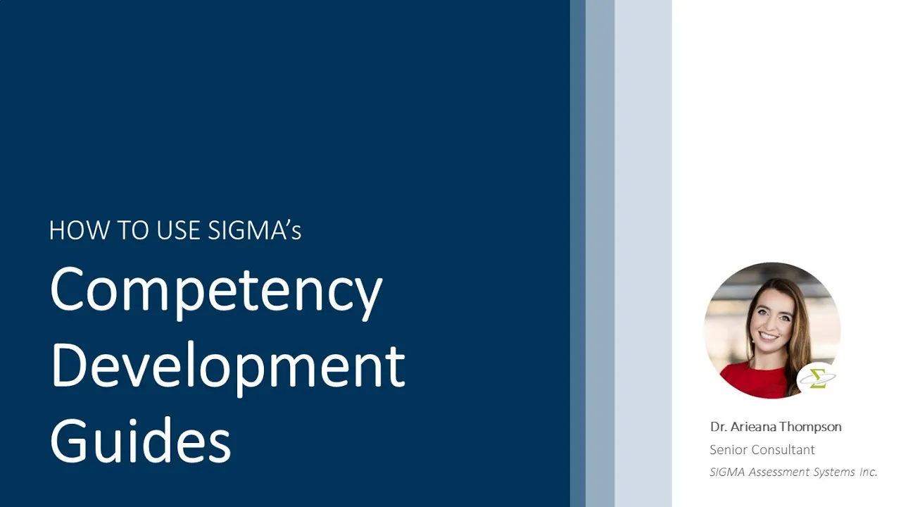 Hello, my name is Dr. Arieana Thompson, and I’m a senior consultant at SIGMA Assessment Systems. My background is in industrial organizational psychology, and I have experienced consulting in leadership development, organizational culture, and succession planning. Today, I’m going to be talking about SIGMA’s resource, Leadership Competency Development Guides.