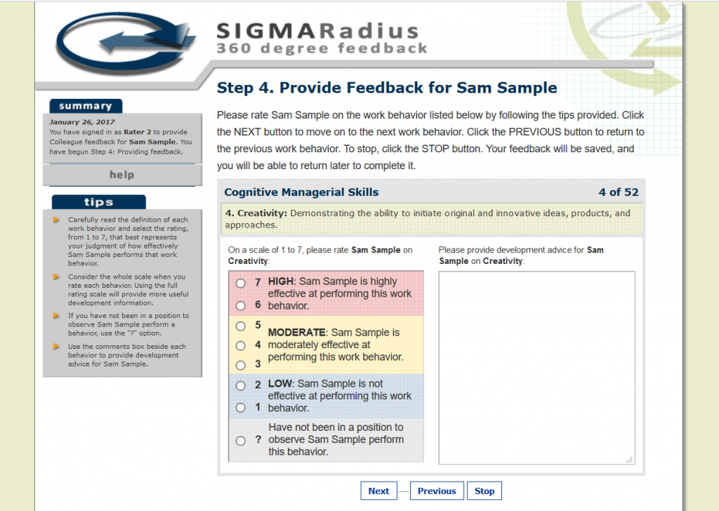 The following is an example of our SigmaRadius 360 Degree Feedback tool.