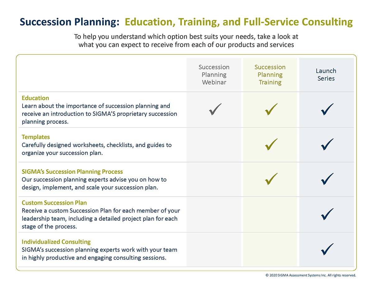 For more information on SIGMA’s succession planning process check out our succession planning template and the succession planning webinar.
