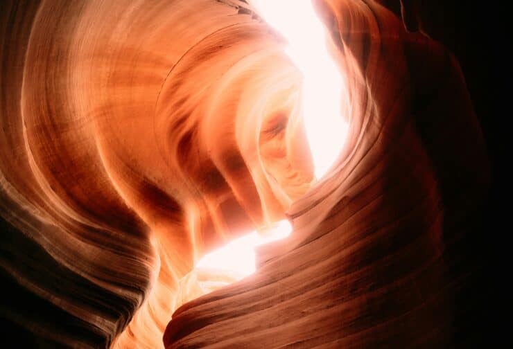 Sun shining through a narrow pass at the bottom of a reddish brown canyon with walls of wavy rock on either side; cover image for a blog on top leadership skills for 2026.